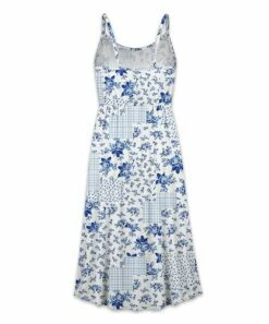 Coupon โญ UDEAR Blue & White Floral Patchwork Button-Front Sleeveless ๐ Dress – ๐ฉ Women ๐ฏ