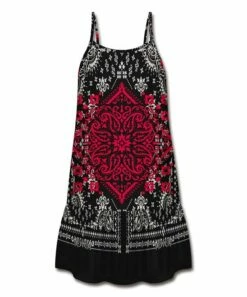 New ๐ฅฐ UDEAR Black & Red Paisley Medallion Ruffle-Hem Sleeveless ๐ Dress – ๐ฉ Women โค๏ธ