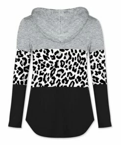 Best Sale 🎁 UDEAR Light Heather Gray & Black Leopard Color Block Hoodie – 👩 Women & Plus ✔️