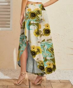 Brand new 🔔 UDEAR Yellow & Green Abstract Floral Side-Slit Palazzo Pants – 👩 Women 👏