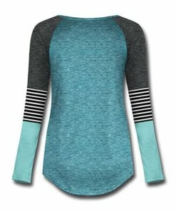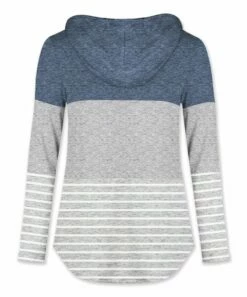 Budget ๐ UDEAR Heather Blue & Gray Stripe Color Block Curved-Hem Hoodie – ๐ฉ Women ๐