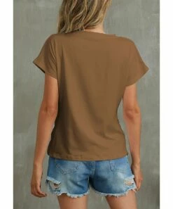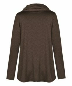 Deals ๐ UDEAR Dark Heather Coffee Button-Accent Tulip-Hem Cowl Neck Top – ๐ฉ Women โจ