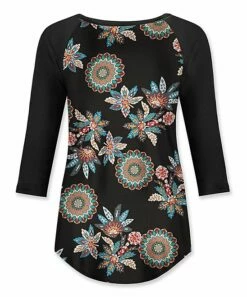 Hot Sale โ UDEAR Red & Black Floral Mandala Three-Quarter Sleeve Raglan Top – ๐ฉ Women โ๏ธ