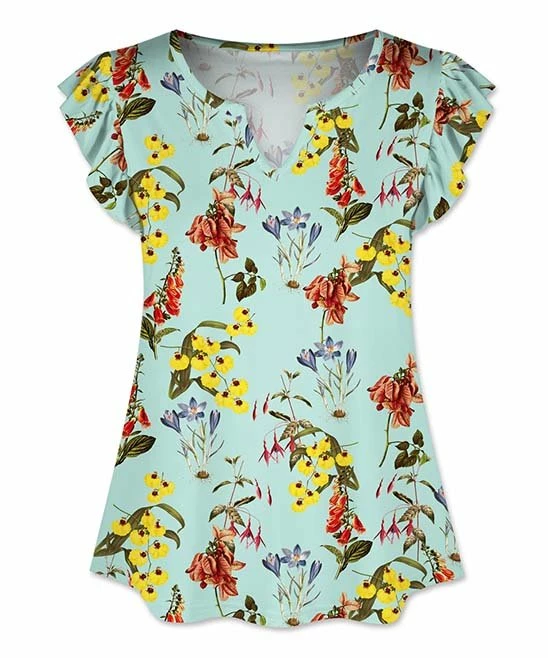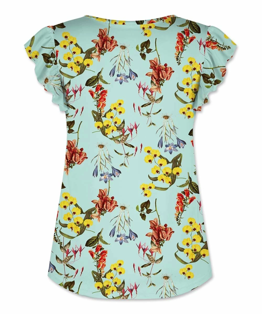 With flutter sleeves and an eye-catching print, this top can be coordinated into your outfits to make a stylish statement.