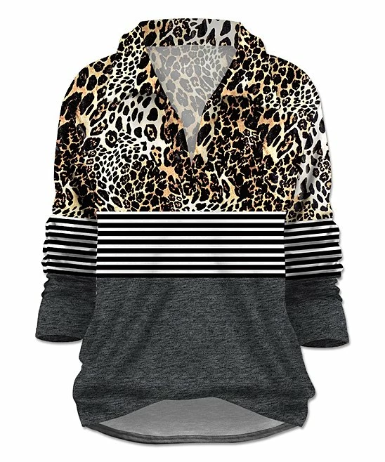 A hi-low hem and a shirt collar make a polished pair in this playfully printed top.