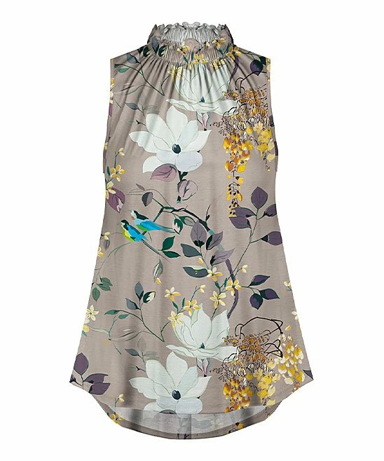 Rejuvenate your everyday wardrobe with the lighthearted print showcased on this round-neck top that’s free from sleeves to provide warm day appeal.