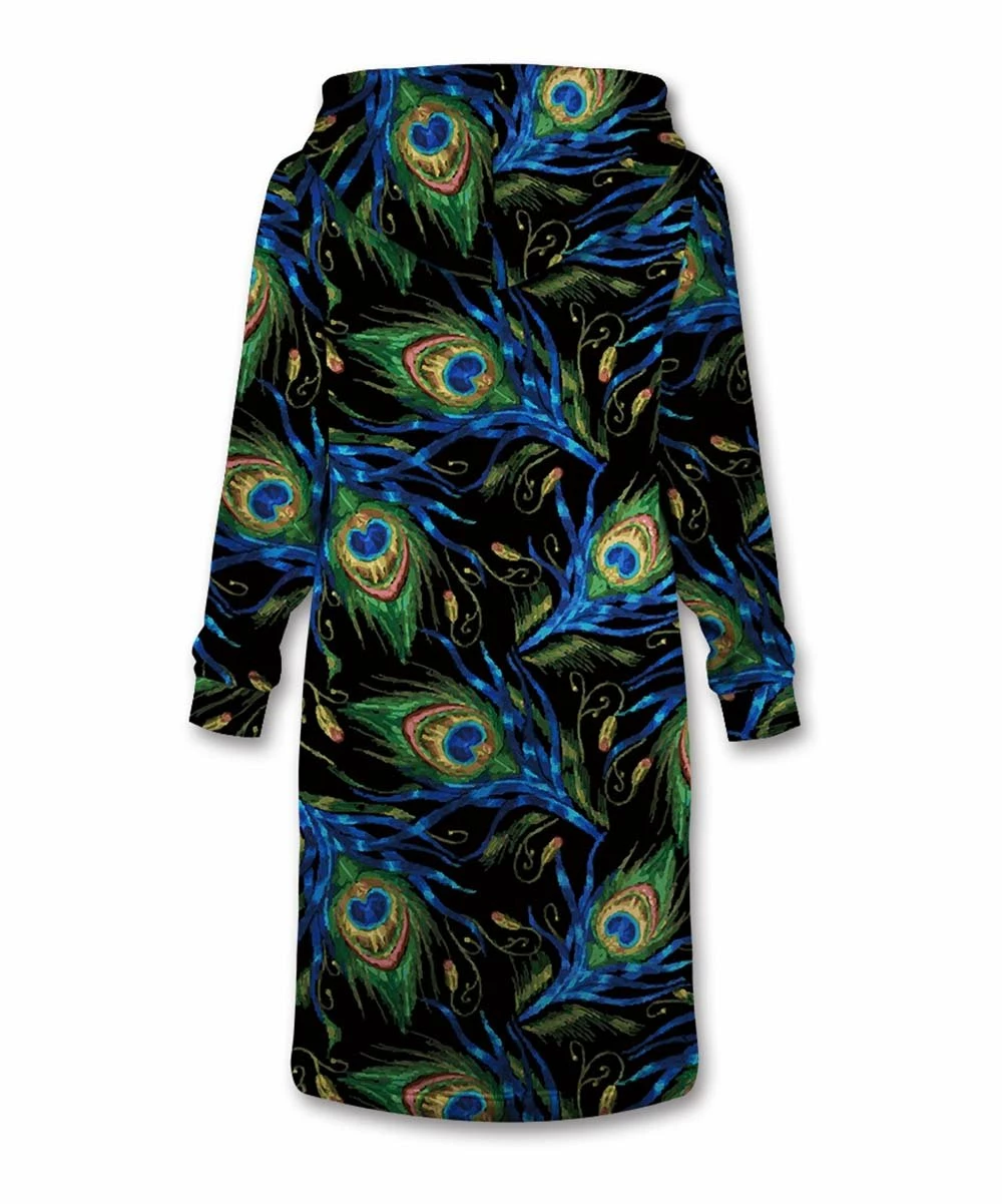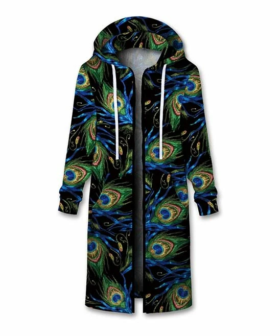 Accent your favorite basics with this extra-long hoodie styled with an eye-popping print and roomy side pockets.