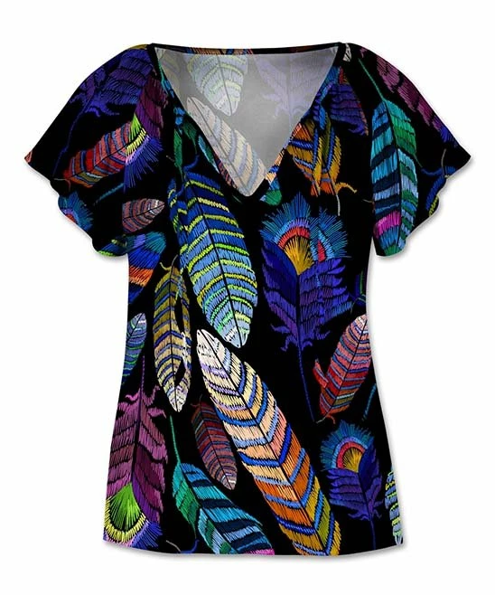 Feminine style takes flight in the design of this stretchy knit top framed by flutter sleeves. You can wear the ties loose or use them to cinch the v-neck.