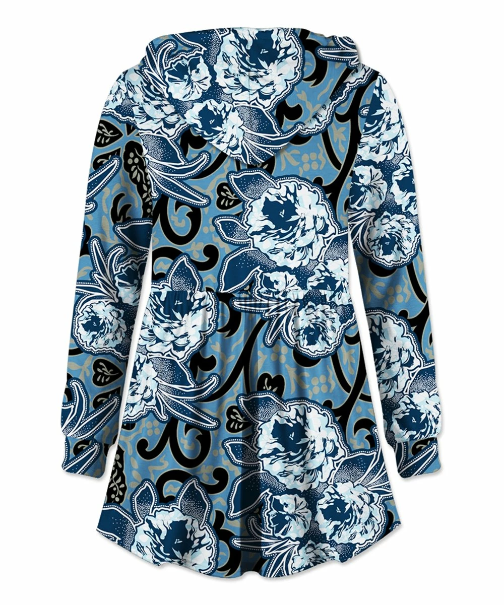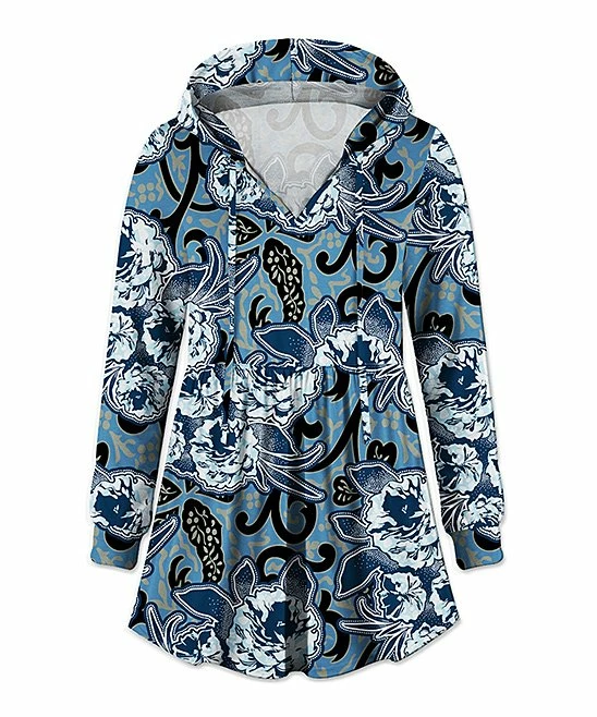This hoodie is upgraded from casual to chic thanks to a swinging shape and colorful patterned design.