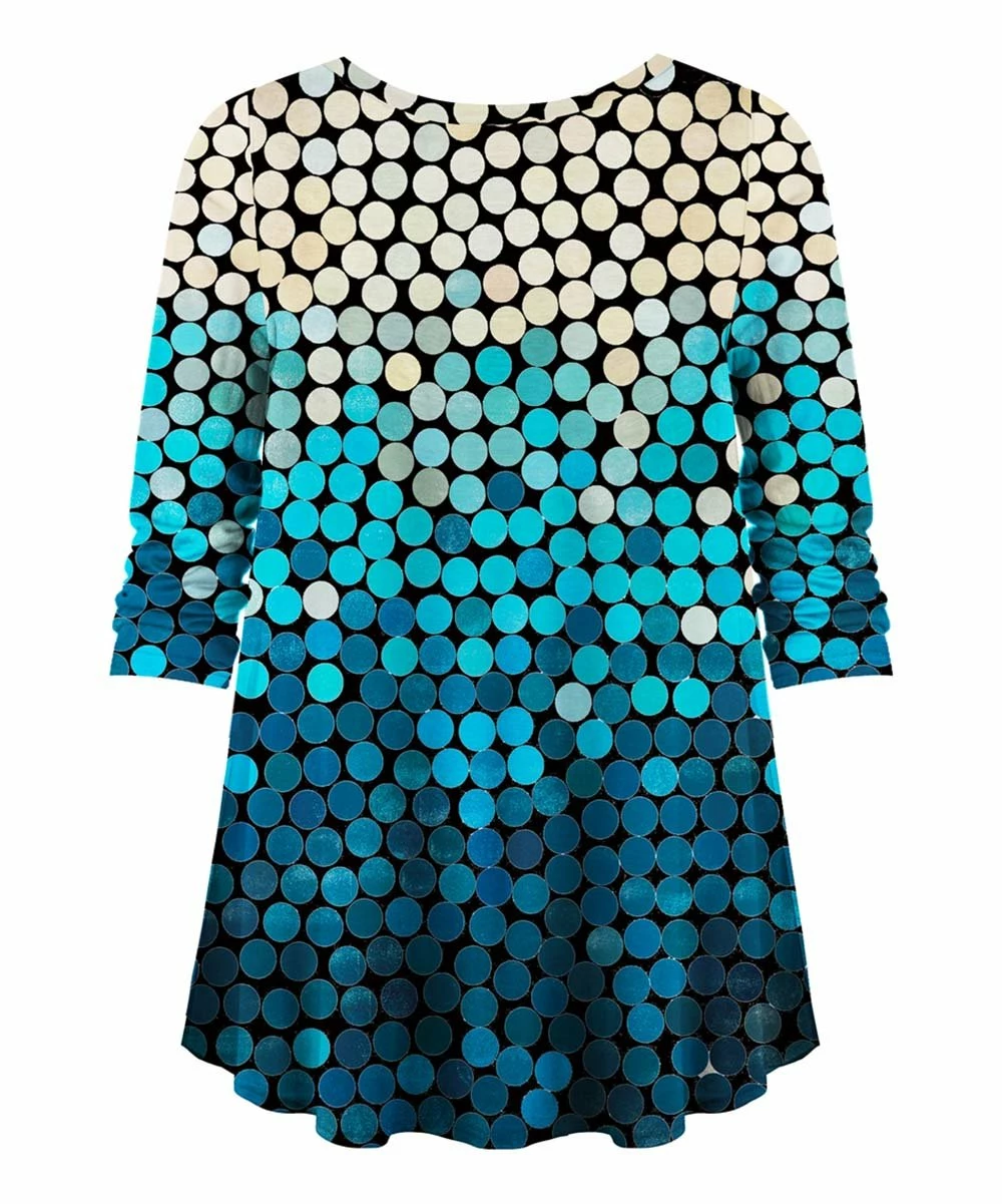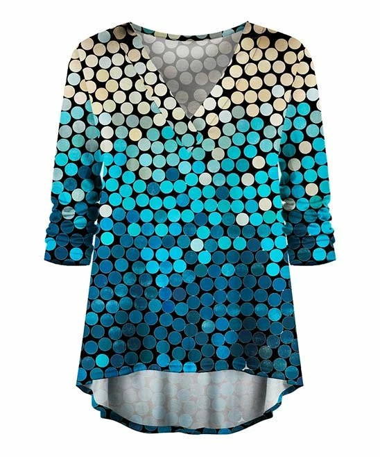 Refresh your hemline game with this v-neck top that flows to a hi-low finish. Three-quarter sleeves prep you for shifting temps.