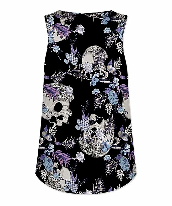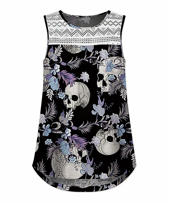 Dress up your best-beloved jeans or leggings with this sleeveless top featuring a leaf print and crocheted neckline detailing. Its stretchy material will keep you cool and comfy all day long.