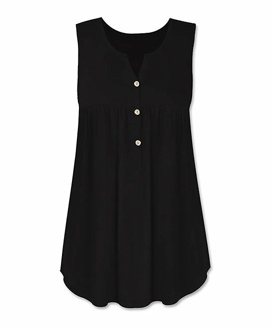 Complement leggings, jeans and more when you layer on this breezy top charmed with preppy buttons and a flowing hem.