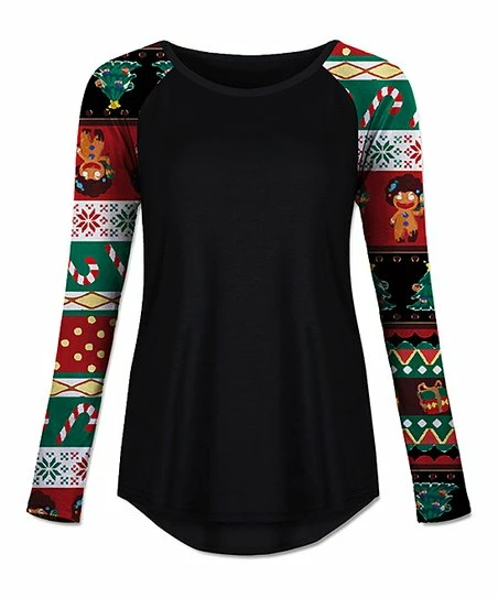 Show your holiday spirit with this raglan tee that boasts a festive motif as well as a stretch-enhanced blend for comfort.