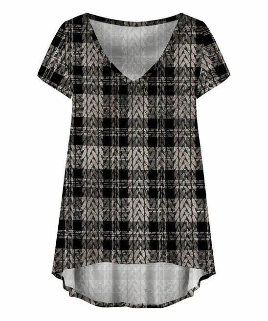 Revamp your weekend wardrobe with this flowy V-neck top featuring stretchy fabric and a hi-low hemline for comfortably versatile style.