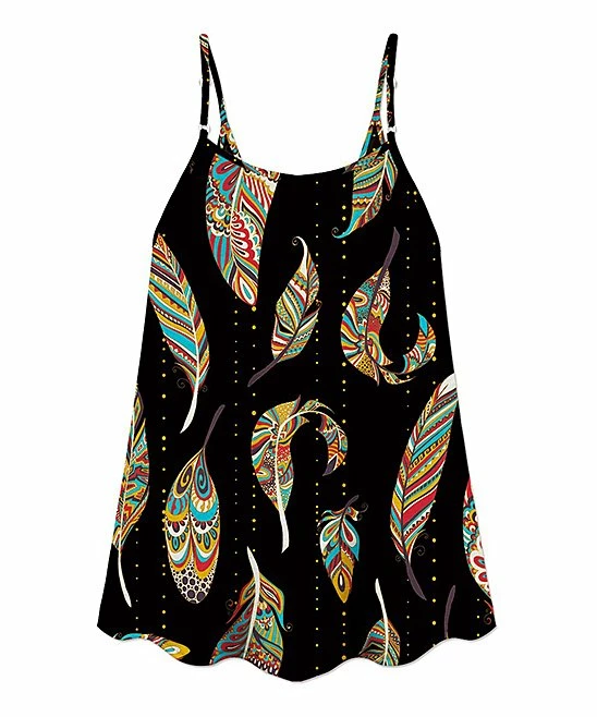 Pair your favorite jeans or leggings with this brightly patterned scoop-neck top featuring a sleeveless design and buttons along the front.