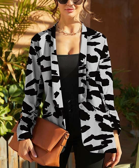 This open-front blazer boasts a lightweight, stretch-infused fabric and long sleeves for daylong comfort.