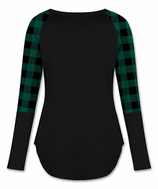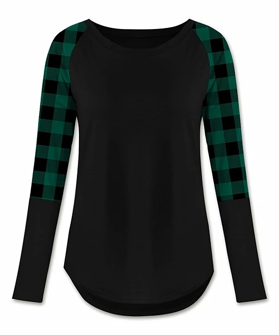 Plaid sleeves and a soft stretch blend combine in this chic raglan tee that’s as comfy as it is cool.