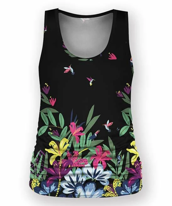 You’ll love the versatility and flattering design of this vibrant tank that features a scoop neckline and ruching at the hem. Wear it as a base layer or on its own on warmer days.