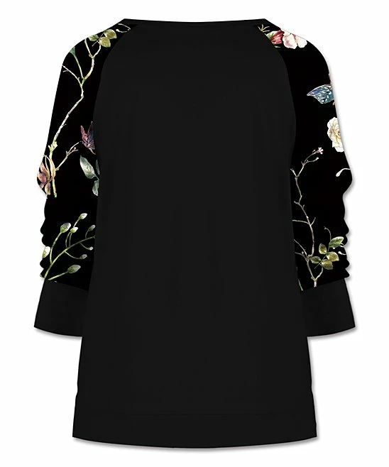 Add a cool touch to your wardrobe with this round-neck long-sleeved top featuring a hint of stretch to keep you comfy and a gorgeous print to keep you delighted.