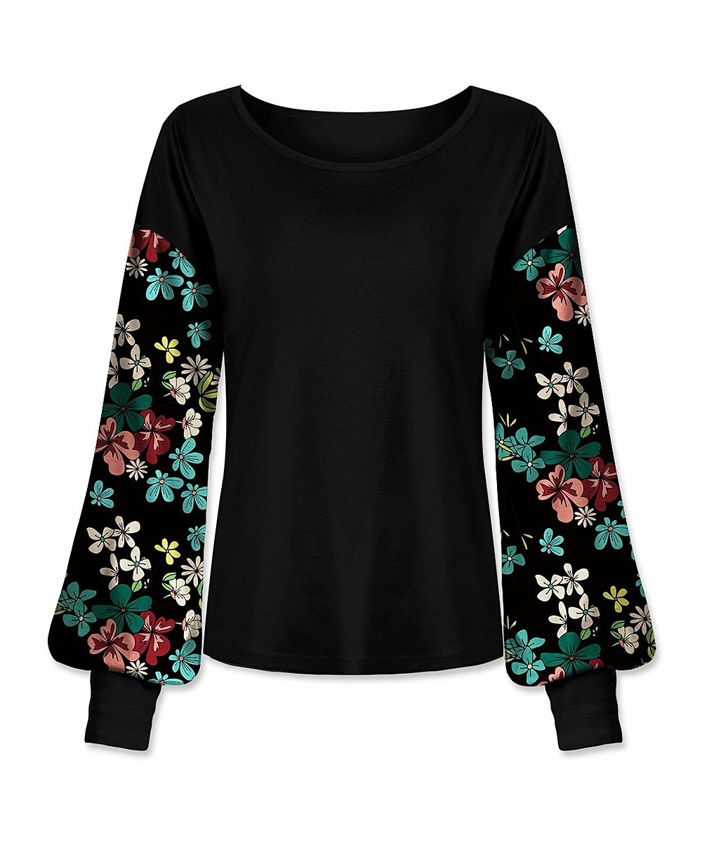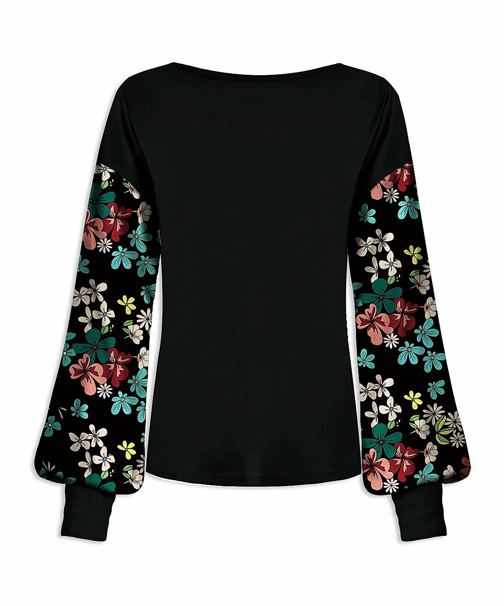 Add a pop of flair to your casual ensembles courtesy of this soft and stretchy tunic made with a pretty contrast print and billowing bishop sleeves.