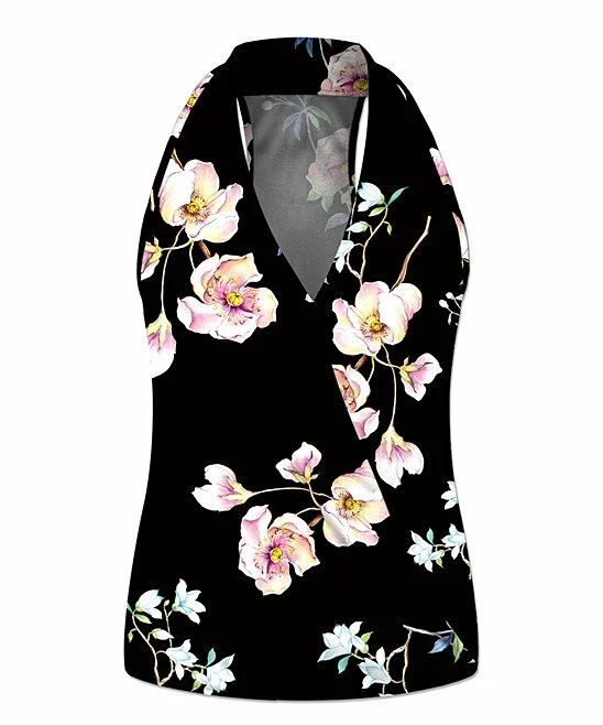 Whether you layer it beneath your favorite cardigan or wear it alone to show off your shoulders, this sleeveless top flatters with a streamlined surplice silhouette, a halter-style neckline and a hint of comfortable stretch.