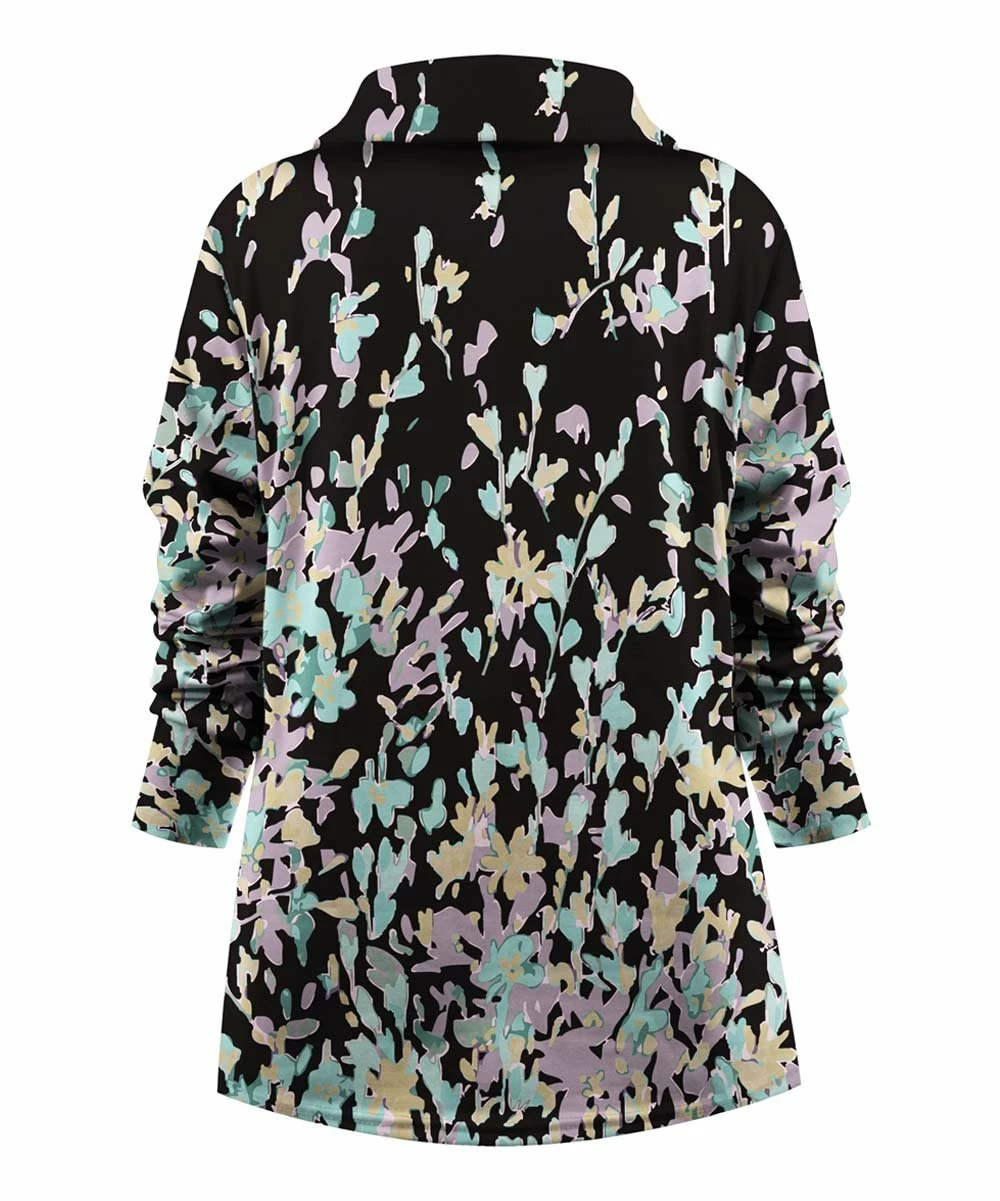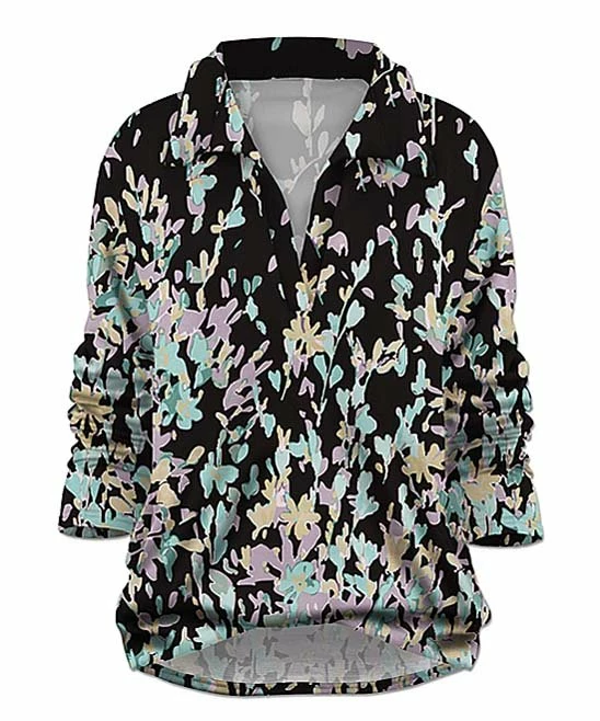 Please your inner print lover with this long-sleeve top that features a v-neck framed by a classic collar.
