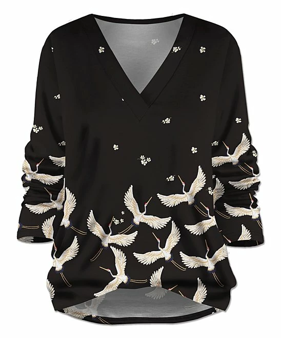 Elevate your everyday wardrobe with this top that features a flattering V-neckline and an eye-catching print.