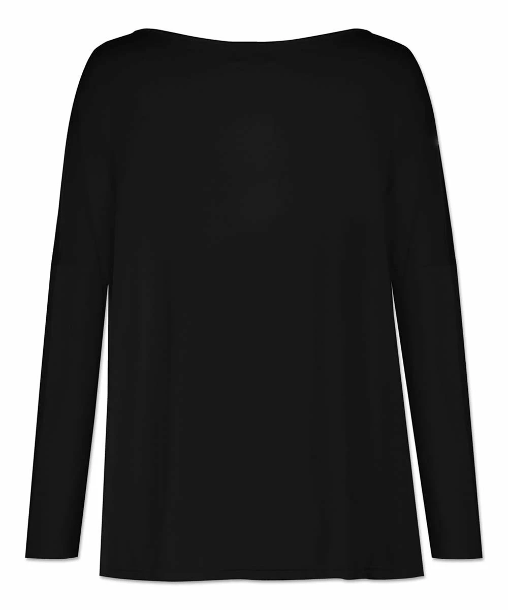 Take a relaxed approach to weekend dressing with this top that features deeply cut dolman-sleeves. A scoop neck boosts its slouchy spirit and a knotted hem ties up the details of the stretchy knit piece in a trendy way.
