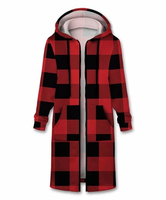 Stay warm and cozy while making a lively style statement in this zip-up hooded coat designed from lightweight material with a playful pattern.