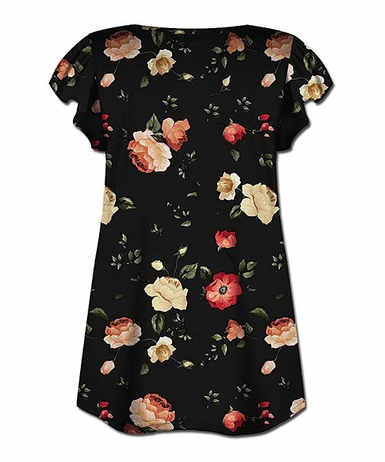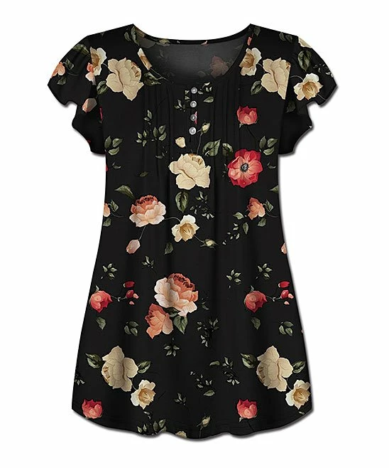 Add a pop of print to casual ensembles with this top boasting light, stretch-friendly fabric, flutter sleeves and a breezy silhouette.