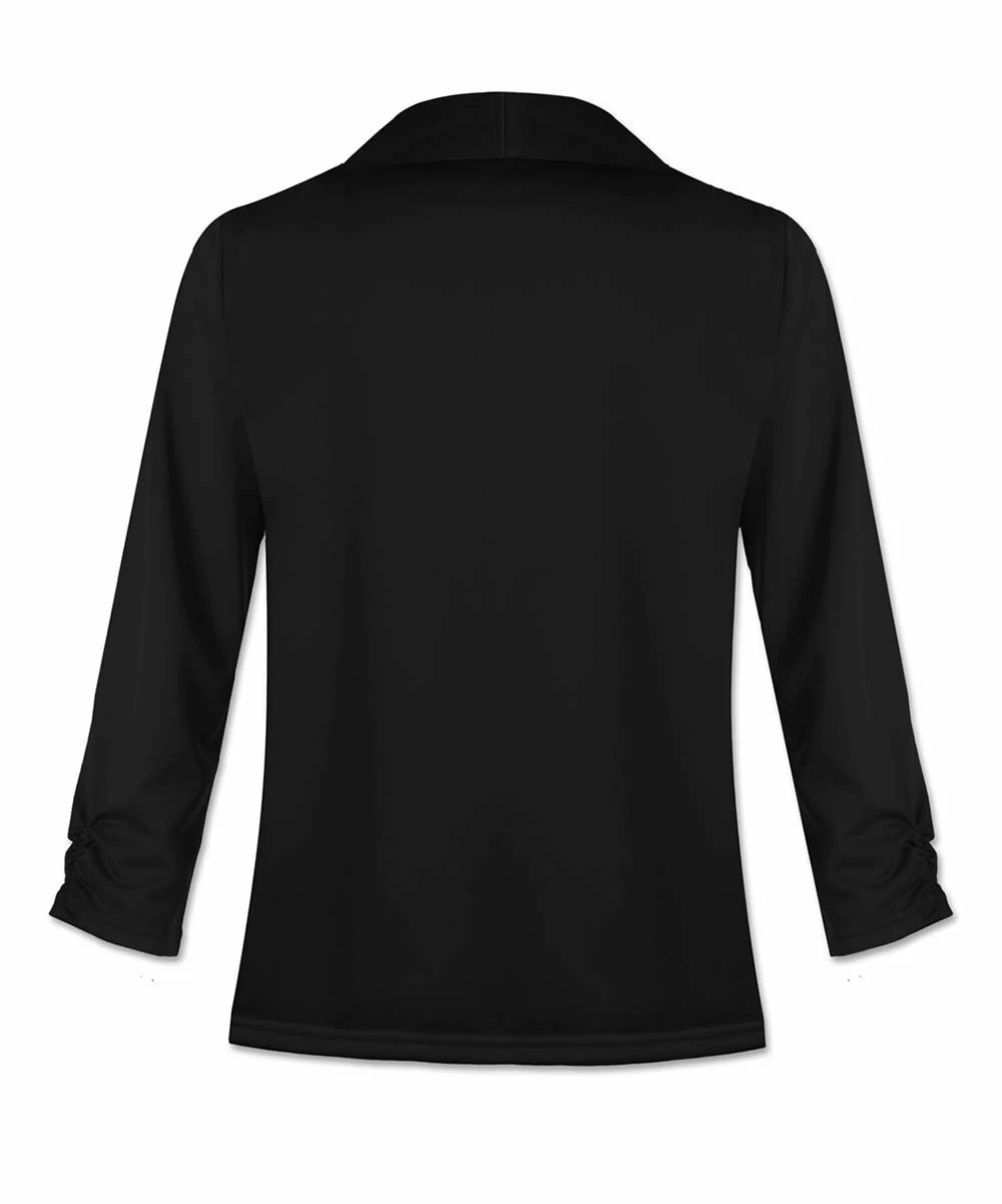 Punctuate your dresses and separates in a feminine way with this blazer that shows off a draped open front. A touch of stretch lets you layer in comfort.