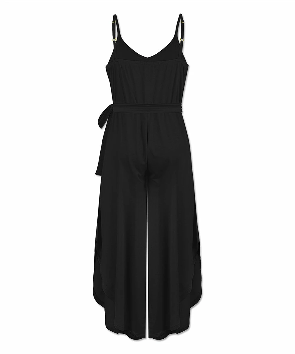 Whether you dress it up with heels or dress it down for the day with sandals, this sleeveless jumpsuit will make an effortlessly breezy statement with its flowing wide legs and side slits at the hem.