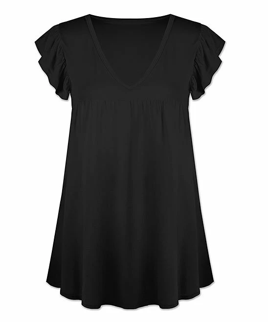 Add a charming touch to your attire with this twirl-inspiring swing top featuring a flattering v-neckline and flutter sleeves for added flair.