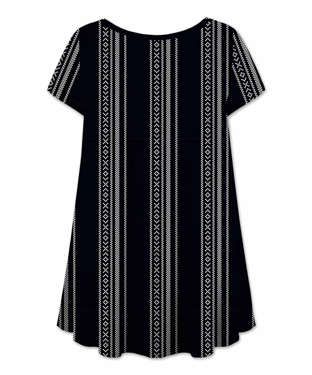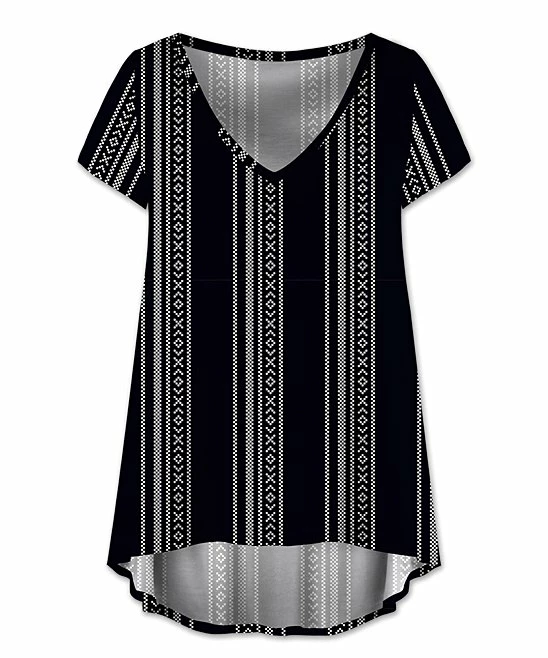 Maximize your mod appeal with this tunic that flows to a dramatic hi-low hem. A v-neck awaits your favorite necklaces, and short sleeves deliver cool comfort throughout the day.