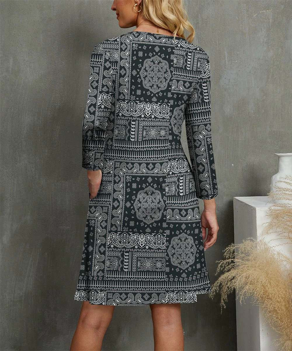 Long-sleeve dress with an eye-catching pattern and stretch-infused fabric.