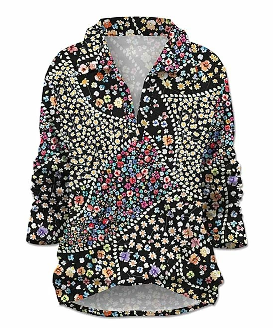 Revamp your wear-everywhere wardrobe with this patterned V-neck top featuring a classic crisp collar and stretch-infused fabric for a comfortably flattering fit you can take from work to weekend.
