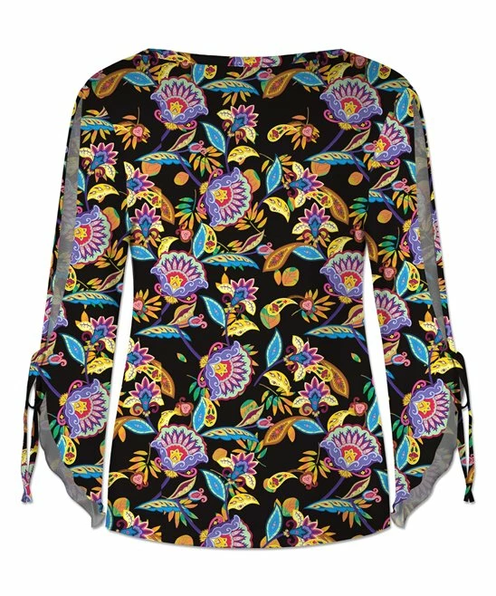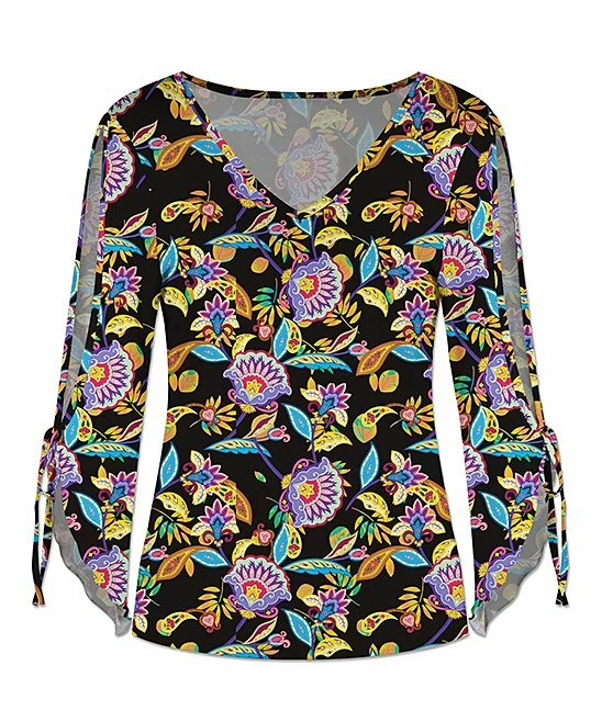 Create a wow-worthy look with this V-neck top featuring comfortable knit fabric and angled, side-slit sleeves you can tie together or let hang loose.