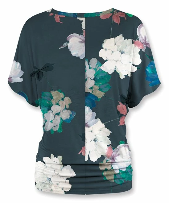 Elevate your collection with this bold printed top featuring breezy dolman sleeves and a hint of stretch for ultimate comfort.