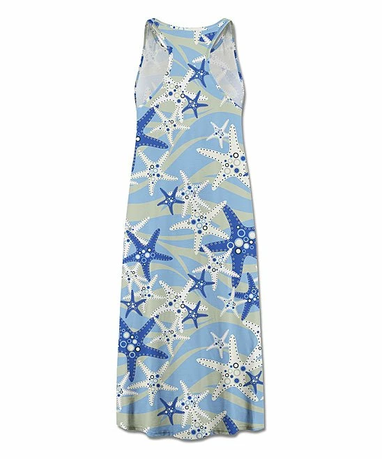 Greet warm weather in playful fashion wearing this dress decked out in a beachy print. A racerback keeps the straps secure as you cruise through your days.