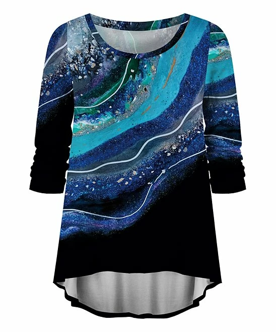 Featuring a hi-low hem and flowing silhouette, this stretch-enhanced top pairs beautifully with jeans, dress pants or leggings.