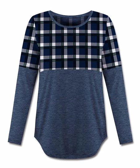 A playful pop of plaid lends contemporary cabin-chic vibes to this casual laid-back top, made with a hint of stretch for all-day comfort.