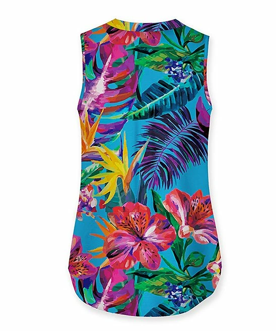 Bring the vibrant warm winds of the tropics into your ever day wardrobe with this v-neck tank in a floral pattern.