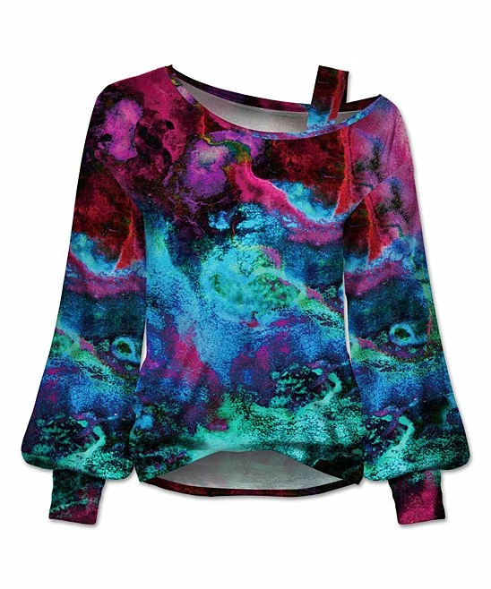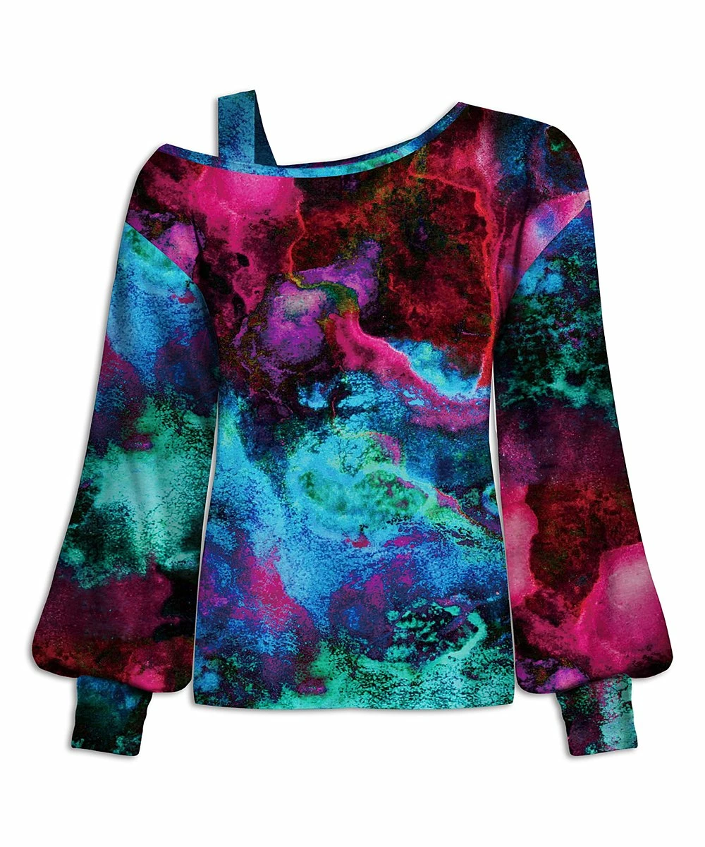 Stand out in style with this bishop-sleeve top boasting a single shoulder cutout and stretch-infused fabric for comfortably casual wear.