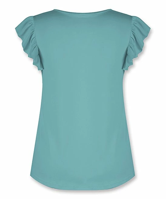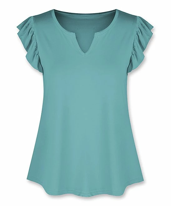 Dress up your casual outfits with the feminine flutter sleeves of this flowy top. A polished notch neckline and hint of stretch fabric keep you stylishly comfortable from work to weekend.