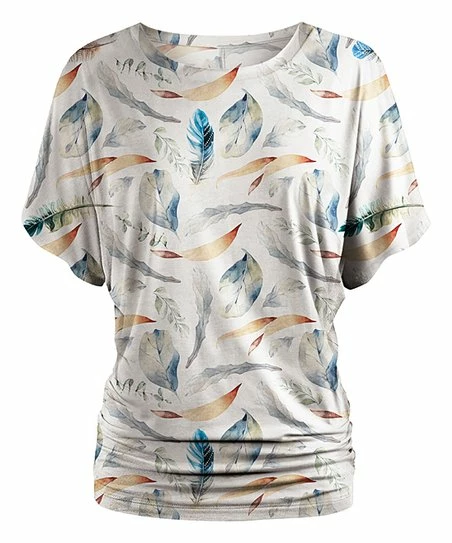 Enjoy the easygoing fit of this ruched-hem dolman top featuring stretchy fabric and a bold print for comfortably creative styling with your favorite jeans or leggings.
