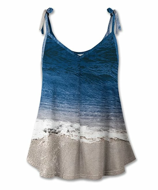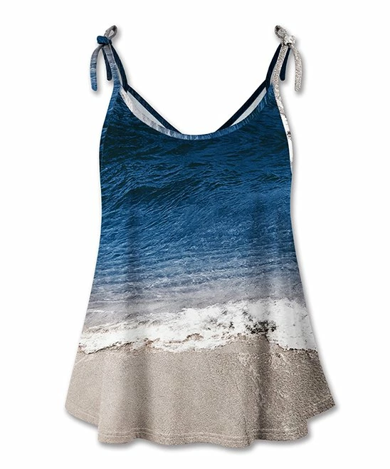 Casual tank top featuring a halter neckline and tied straps. Light, stretch-infused fabric.