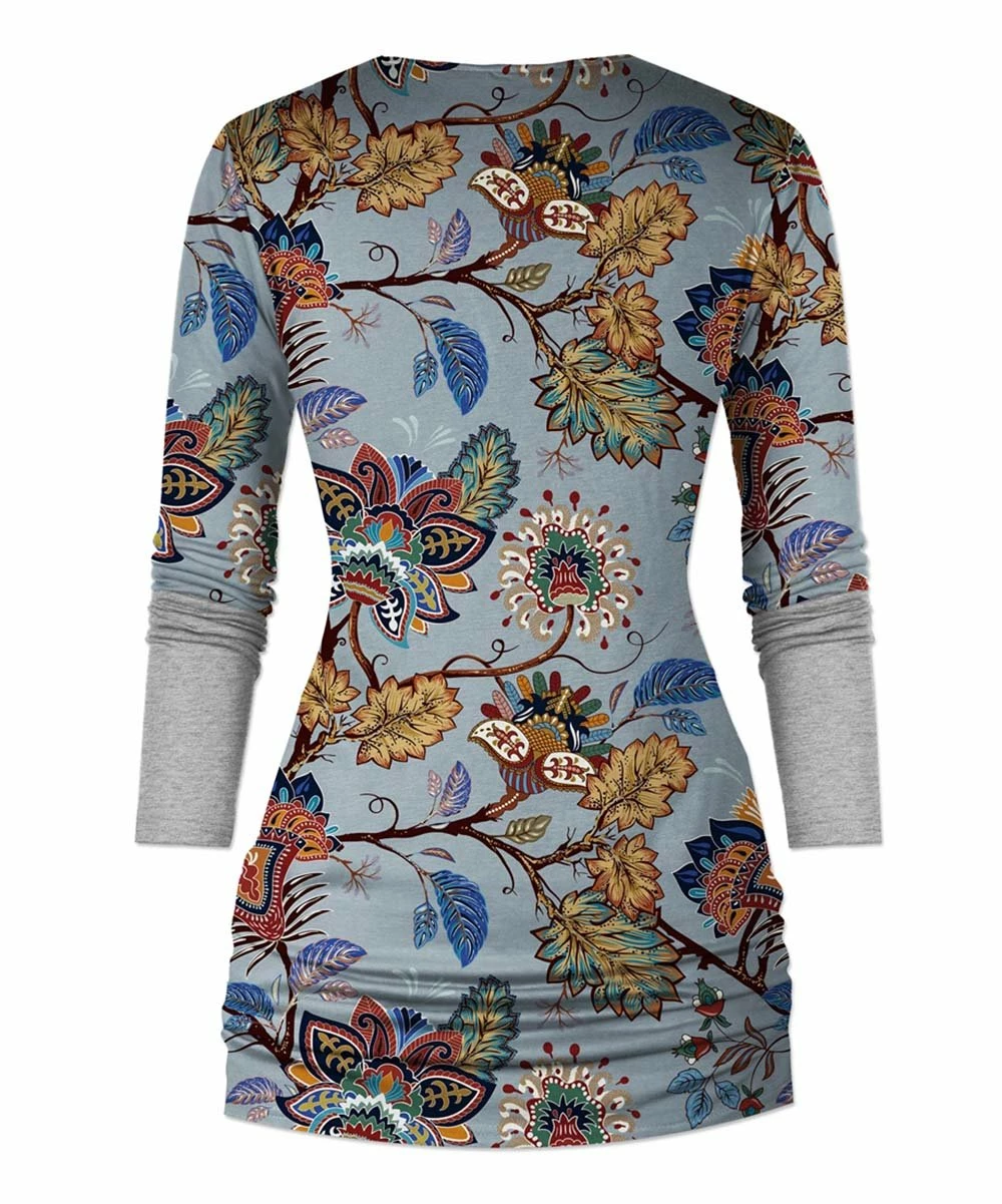 Revamp your weekend looks with this shapely tunic that shows off buttons below its v-neck and has bold contrasting long cuffs.