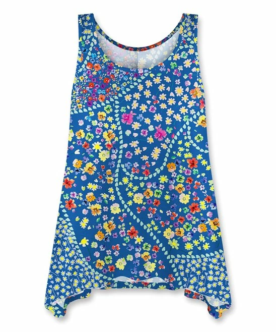 Ease through the day in this breezy and billowing tank featuring a draping sidetail hem. Stretch-enhanced material keeps you feeling free and comfortable.