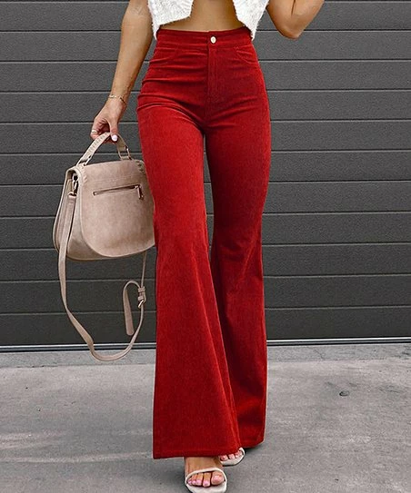 These lightweight pants feature a stylish flare cut and flattering high waist.