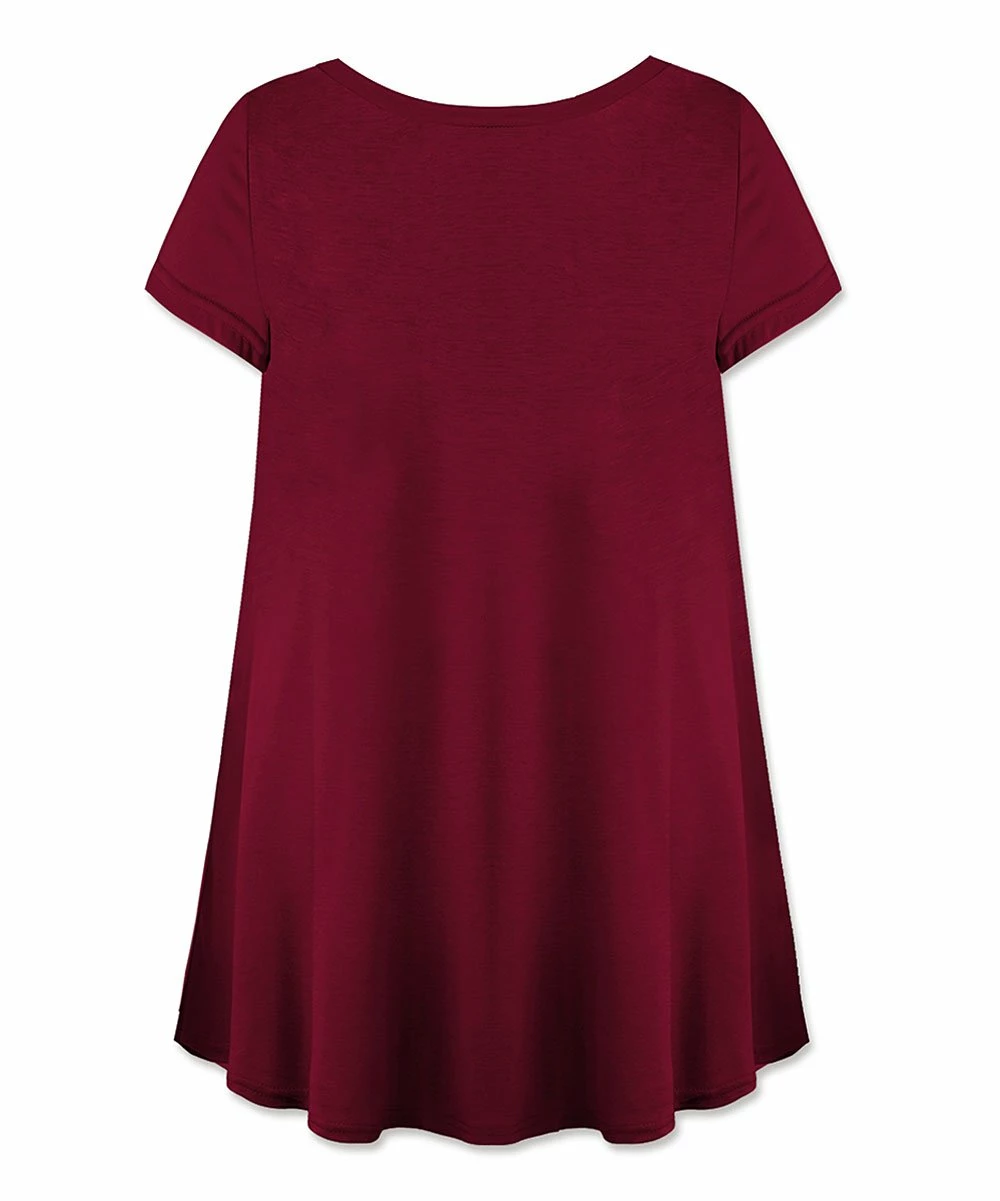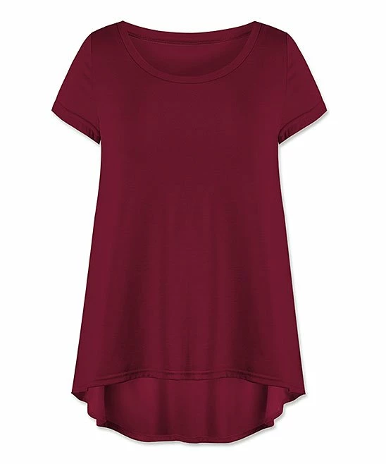Pair this relaxed hi-low top with your favorite jeans or leggings for an easygoing look that keeps you comfy in soft, stretch-infused material. Short sleeves make it a fresh pick for warmer days.